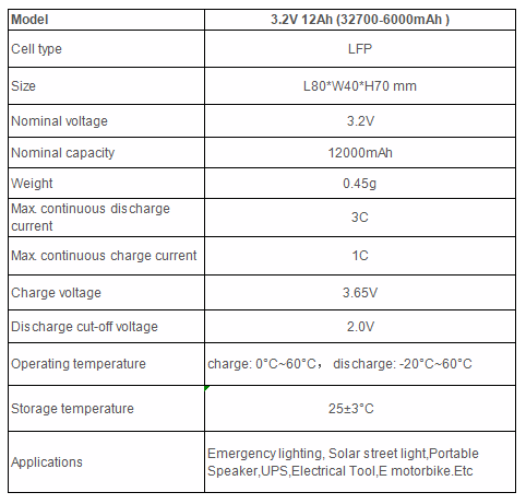 Model No: 3.2v 12Ah